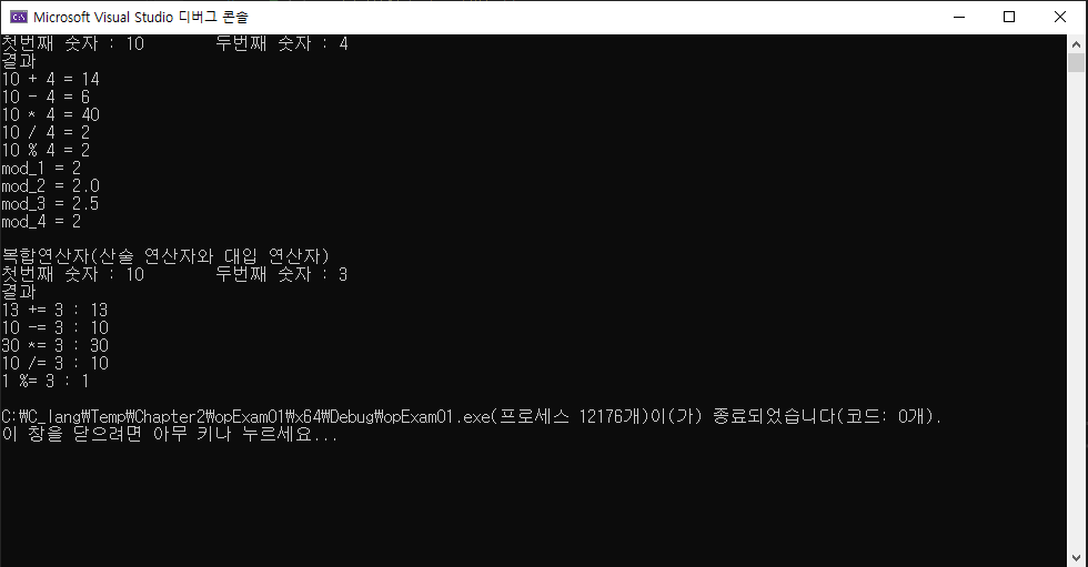 printf("\n복합연산자(산술 연산자와 대입 연산자)\n");
