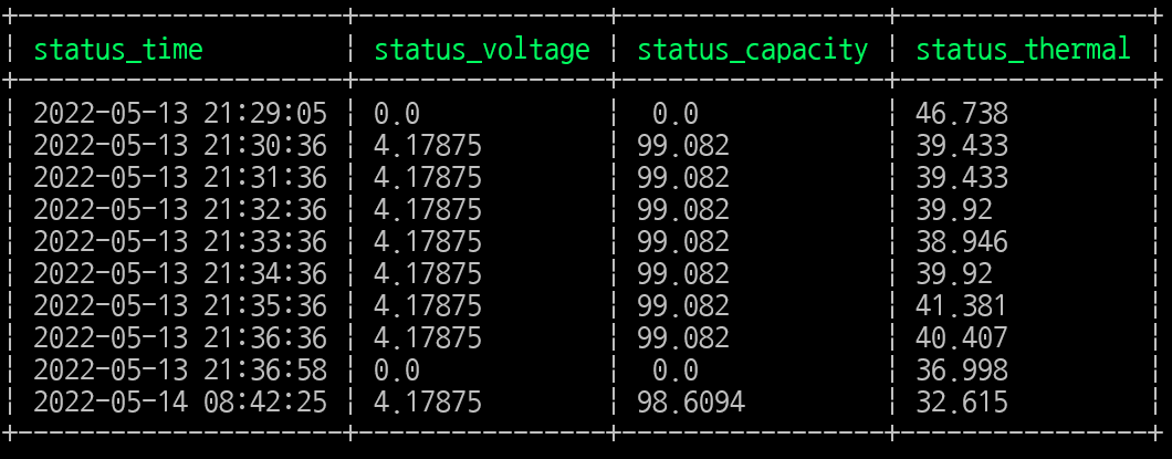 0으로 나오는 값들은 부팅 완료 후 프로그램 시작 시 초기값